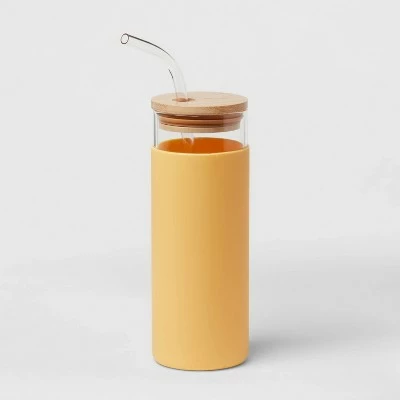 Whether you’re reading, writing or busy with other activities, you’ll stay hydrated when you keep this 16.9-Ounce Glass Tumbler with Straw and Silicone Sleeve from Threshold™ close by. This glass tumbler features a solid-color design with a transparent top and wood-tone lid for an elegant construction that suits your daily style. The included straw helps you drink conveniently while the silicone sleeve helps provide a secure fit. Use this lidded tumbler at home, at the office or anywhere on the go to sip your favorite cold beverages with ease.