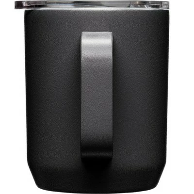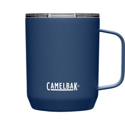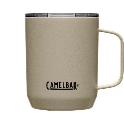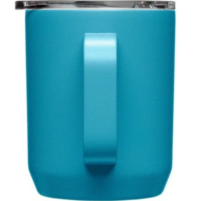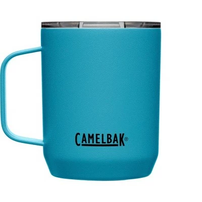 Your ultimate outdoor wingman. The strong and durable CamelBak Horizon 12 oz Camp Mug is constructed in double-walled, vacuum-insulated stainless steel with a powder coat finish, keeping it looking good on the outside and at piping hot on the inside. The tri-mode tumbler lid slides open for flow control and is spill-resistant. A non-slip silicone pad on the base provides a soft landing on surfaces to avoid scratches and spills. Dishwasher safe and free of BPA, BPS, and BPF.