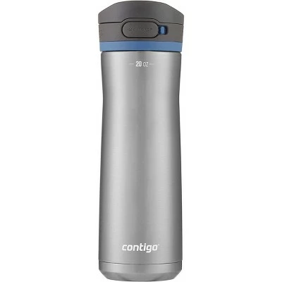 Pop, sip, and click your way to better hydration with the Contigo 20 oz. Jackson Chill 2.0 Vacuum Insulated Stainless Steel Water Bottle! It features an AutoPop lid and wide mouthpiece for convenient, one-handed drinking. Whether you’re working out or working at your desk, the double-wall vacuum insulation keeps drinks cold for up to 24 hours and hot for up to 6 hours. When you’re done drinking simply click the lid back into place, then lock the lid for extra protection. The leakproof design means no spills in your car or on your desk. Carrying it around is easy thanks to the integrated handle. Button lock ensures top doesn’t open accidentally. Top-rack dishwasher-safe. Fits most car cup holders.