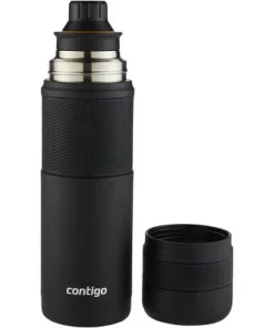 The Contigo 25 oz. ThermaLock Stainless Steel Travel Thermal Bottle keeps your drinks hot for up to 30 hours or cold for up to 45 with Thermalock vacuum insulation. A leak proof lid (when closed) is perfect for on-the-go activities from running around doing errands to working out. A 360 degree pour spout interface gives you a controlled pour no matter what the angle. Leak proof lid (when closed) for on-the-go activities. 360° degree pour spout interface gives you a controlled pour at every angle. Drinks stay hot up to 30 hours or cold up to 45 with Thermalock vacuum insulation. Quarter-turn twist makes this bottle quick and easy to open. Easy clean lid completely opens for an extra squeaky clean with no separate parts to take apart or misplace. Insulated lids doubles as a drink cup for on-the-go convenience. Top rack dishwasher safe removable pour spout plug, hand wash lid and body. 25 oz., 3.34″ w, 11.09″ h, Stainless steel lid lid, Vacuum insulated stainless steel body.