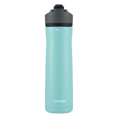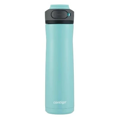 Press, sip, seal your way to better hydration. The Contigo AUTOSEAL Tritan Water Bottle lets you sip easily with just the push of a button. Whether you’re working out or working at your desk, the double-wall vacuum-insulated stainless steel body keeps drinks cold for 24 hours and hot for 6 hours. Release the button to seal the spout for 100% spill-proof one-handed drinking wherever you go. When you’re done drinking, flip down the spout cover to help protect the mouthpiece from dirt and grime. A button lock ensures the top doesn’t open accidentally. Carrying it around is easy with the integrated handle that swings up and sets back down to stay out of the way. The lid is top-rack dishwasher-safe and the underside of the lid opens up for easy cleanups. Fits most car cup holders.