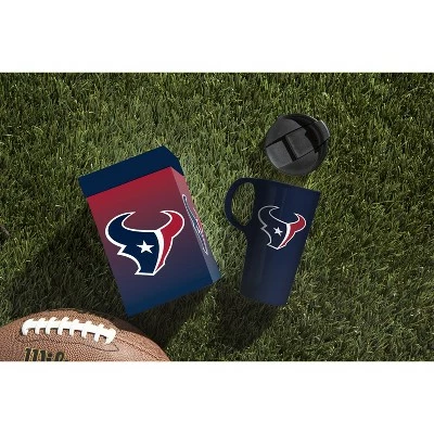 - Always travel with your favorite NFL team. The sleek design of this mug features the Houston Texans logo and colors, so you can showcase your fandom wherever you go. Perfect gift for a friend or family member who is a fan of the Houston Texans.