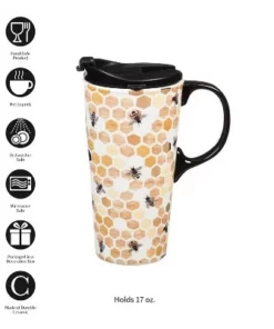 - Travel mug holds up to 17 oz. of hot or cold liquid.