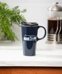 Measures approximately 5.24 x 7 inches. This ceramic travel latte mug is microwave and top rack dishwasher safe. Hand wash is recommended to extend the life of the product. Great to have for traveling, this mug holds up to 17 oz. of hot or cold liquid. Its circular-shaped handle helps you enjoy your morning coffee or hot tea comfortably. Fits into most vehicle cup holders. Plastic leak-resistant lid has 3 rings of silicone to help secure it inside of the cup. Always travel with your favorite NFL team. The sleek design of this mug features the Kansas City Chiefs logo and colors, so you can showcase your fandom wherever you go. Perfect gift for a friend or family member who is a fan of the Kansas City Chiefs.