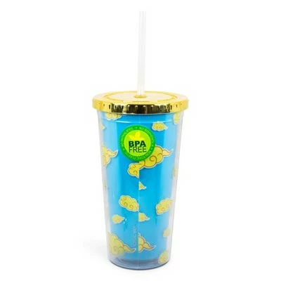 Just how do you expect to track down all seven Dragon Balls if you don’t hydrate!? From Dragon Ball Z, this acrylic travel cup features Goku in a sea of clouds. Includes gold down screw-on lid and reusable straw. Officially licensed. Produced by Just Funky.