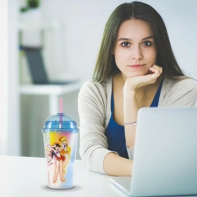 If you are a Sailor Moon fan, there is no better way to drink your favorite drink. This Sailor Moon cup features graphics of the Sailor Moon characters, a sparkly dome lid and a straw. Perfect for traveling and staying hydrated.