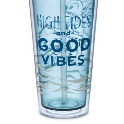 It’s a life on the ocean waves for Stitch as he hangs eight on this acrylic tumbler. Experiment 626 is pictured enjoying ”High Tides and Good Vibes” on this double-walled design. With its clear exterior and blue inner wall, you’ll feel like you’re on vacation every time you sip from the straw. Genuine, Original, Authentic Disney Store Product.