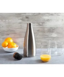 Serve up some elegance with this entertaining essential. Perfect for keeping chilled wine cool, this polished Carafe features a luxe acacia wood cork that preserves beverage temperature and prevents spillage. Keeps liquid cold for 24 hours and hot for 12, the Carafe is great for dinner parties, tailgates, and picnics! Stainless steel vessel is hand wash only, no abrasives. Not for use in microwave or freezer and not intended for carbonated or fermented beverages.