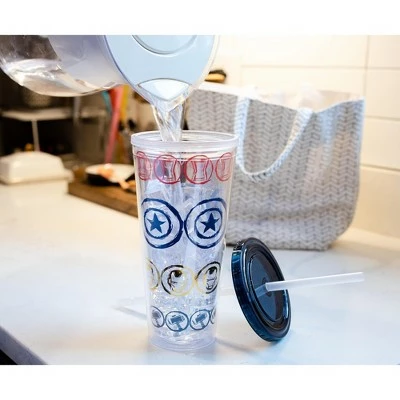 - SUPER DESIGN: Clear cup features colorful icons of popular Marvel superheroes, including Iron Man, Captain America, Black Widow, and Thor.