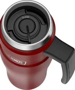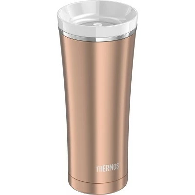 The Sipp by the Thermos line of products embodies sleek, stylish and functional design. The 16-ounce Vacuum Insulated Travel Tumbler is constructed with durable double wall stainless steel and Thermos vacuum insulation technology to keep beverages hot for up to 9 hours or cold for up to 20 hours. Features include a push button lid that operates easily with one hand and a built-in tea hook that will hold tea bags or most loose leaf tea infusers for easy brewing on the go. Thermos vacuum insulation technology for maximum temperature retention. Keeps contents hot for up to 9 hours or cold for up to 20 hours. Durable stainless steel interior and exterior. Exterior stays cool to the touch with hot beverages and sweat-proof with cold. One-handed push button lid. Built-in tea hook holds tea bags or most loose leaf infusers. Fits most automobile cup holders. Compatible with most single cup brewing systems. Dishwasher safe. 16-ounce capacity.