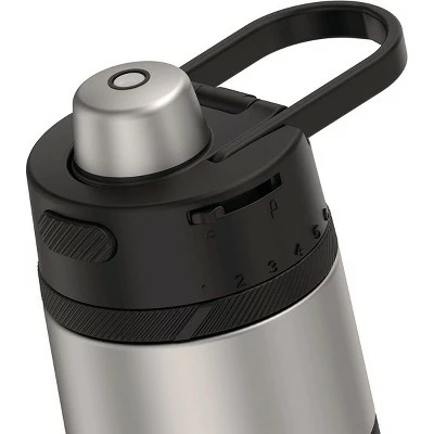 The Thermos 18 oz. Guardian Stainless Steel Vacuum Insulated Water Bottle keeps you in the game. Drinks stay cold for up to 14 hours and features an easy-grip silicone sleeve. Equipped with a hygienic covered spout, locking cap and carry handle, this bottle has you completely covered from uphill hikes to downtown treks. You can even keep track of your daily intake thanks to the rotating hydration meter! Dishwasher safe. Please Note: Not for use with hot liquids.