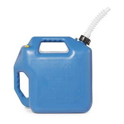 Water Container, Capacity 5 gal, Height 14 3/4 in, Length 15 1/2 in, Width 11 in, High Density Polyethylene, Blue