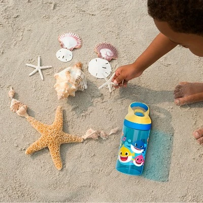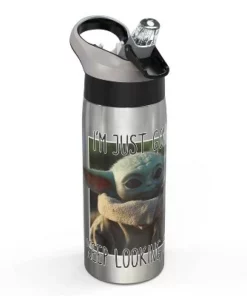 This kids water bottle holds 16 ounces and is made of durable, BPA-free plastic. The screw-on lid has a built-in carrying loop for easy transportation, and doesn’t leak when it’s closed, so the drinking bottle can be tossed into a bag for worry-free travel. The spout also includes a cover so it stays clean when it is not being used. Everything is dishwasher safe, though to keep the artwork bold and bright, we recommend hand washing. Do not microwave.